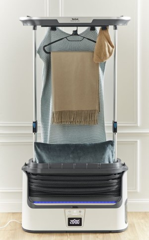 Discover the hands-off garment care solution that does the work for you: The Tefal Care For You Automatic Steamer Purifier dewrinkles, sanitizes and removes odors from clothing and all home textiles—all with an automatic process that couldn't be easier. Revolutionize your morning routine: Simply insert up to 3 items of clothing for efficient wrinkle removal in just 10 minutes, or leave garments in for up to 30 minutes for stubborn wrinkles. The effortless 40-minute sanitizing cycle removes odors like smoke or fried food, while raw steam power kills up to 99.99% of viruses, bacteria and germs.* Save time and energy with a home dry cleaning machine that covers all your needs: Gentle drying with no risk of shrinking or burning, full compatibility with any fabric including delicates, an easy-to-read screen and remote control, an elegant, space-saving vertical design, and so much more. All this, with a game-changing clothing care solution day after day.An effortless automatic morning routine: Insert up to 3 items of clothing for smooth results in as little as 10 minutes, or leave them in for up to 30 minutes for very stubborn wrinkles.